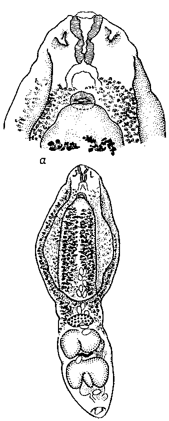 Alaria oregonensis La Rue et Baron, 1927 (по Ля Рю и Бароне, 1927)