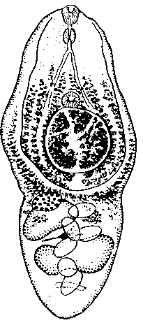 Брюшная присоска овальная, поперечно-удлиненная, 0,102—0,135 мм ширины и 0,082—0,114 мм длины. Она расположена несколько впереди у середины переднего сегмента, причем ее передний край отстоит на 0,282— 0,458 мм от переднего конца тела и на 0,069—0,163 мм от бифуркации кишечника.