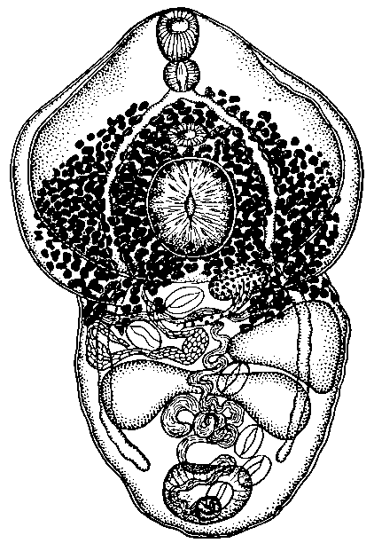 Орган Брандеса овальной формы, 0,283—0,445 мм длины и 0,250— 0,420 мм ширины. Его передний край отстоит на 0,029—0,041 мм от брюшной присоски.