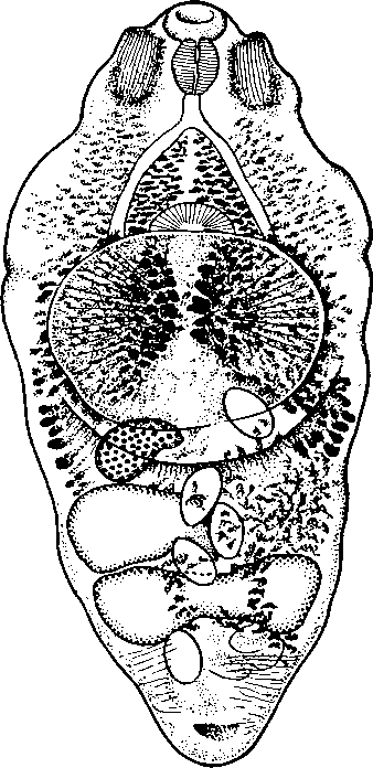 Didelphodiplostomum variabile (Chandler, 1932) (по Дюбуа, 1938)