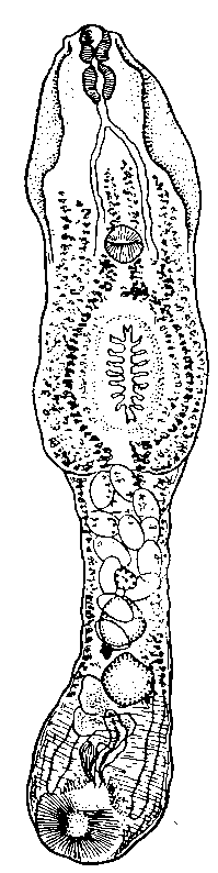 Proterodiplostomum longum (Brandes, 1888) (по Дюбуа, 1936)