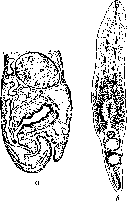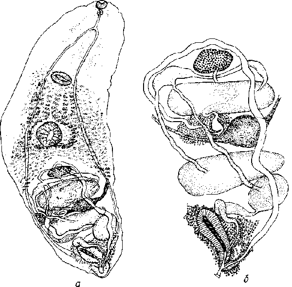 a — сагиттальным срез заднего конца тела; б — общим вид мариты