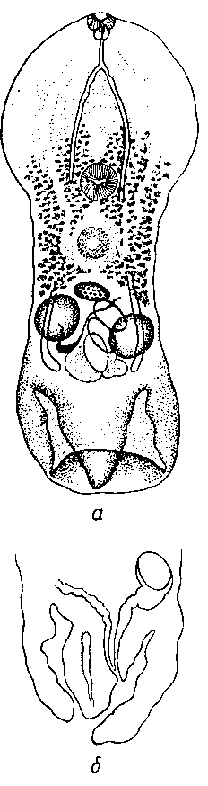 a — общий вид мариты; б — схема расположения половых протоков