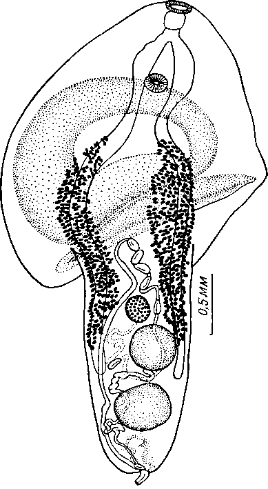 Petalodiplostomum aristoterisi Ruiz et Rangel, 1954 (по Руишу и Рангелю, 1954)