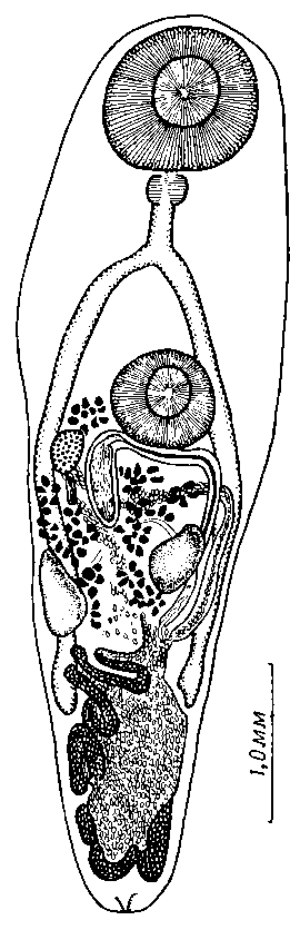 Opisthogonimus artigasi Ruiz et Leao, 1942 (по Руишу и Лео, 1942)