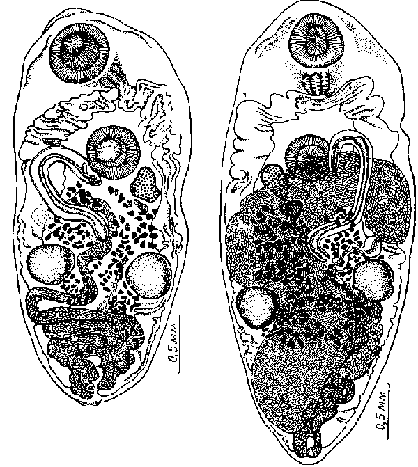 Opisthogonimus fonsecai Ruiz et Leao, 1942 (по Руишу и Лео, 1942)