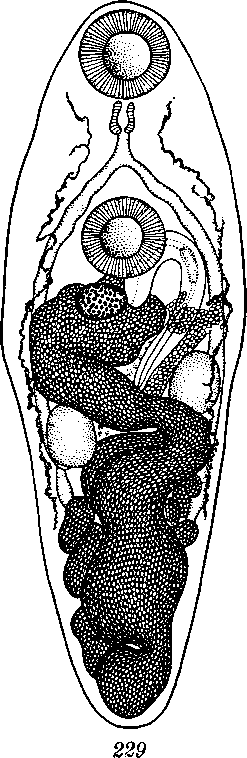 Экскреторный пузырь длинный и широкий. Средний ствол его идет вперед приблизительно до уровня яичника и затем разделяется на два коротких латеральных сосуда.