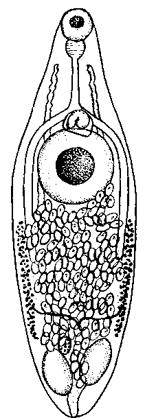 Plagiorchioidea. Трематоды, кутикула которых лишена шипиков. Ротовая присоска небольшого размера; брюшная присоска крупнее ротовой.