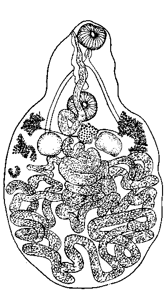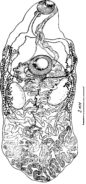 Prosthogonimus leei Hsu, 1935, из яйца домашней утки из Китая (по Хею, 1935 из Дольфю, 1948)