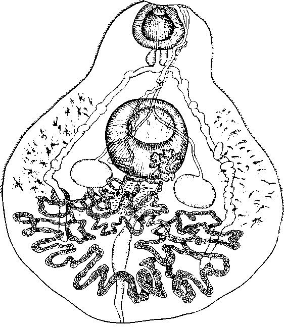 Матка состоит из тонких петель, располагающихся в задней половине тела, позади брюшной присоски и семенников.