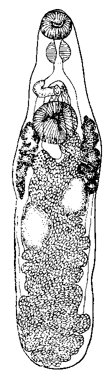 Описание вида (по Берду, Паркеру и Рейберу, 1940). Паразиты среднего размера с умеренно развитыми мышцами; передний конец имеет форму конуса; тело суживается от заднего конца по направлению к переднему. Длина тела 4,0—4,5 мм при наибольшей ширине 1,0 мм. Кутикула усеяна шипиками почти до самого заднего конца тела. Ротовая присоска субтерминальная, мышечная, достигает 0,36 мм в диаметре. Диаметр брюшной присоски равен 0,43 мм, она располагается в задней части передней трети длины тела. Имеется короткий префаринкс. Фаринкс мышечный, окруженный железистыми клетками. Пищевод почти одинаковой длины с фаринксом.