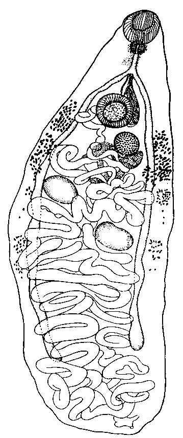 Циррус может вывернуться на расстояние 0,430 мм. Половое отверстие лежит несколько левее медианной линии, немного ближе к бифуркации кишечных стволов, чем к брюшной присоске.