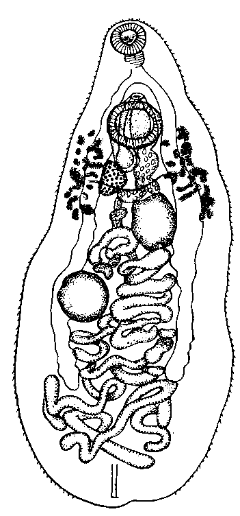 Описание вида (по Тубангуи, 1933). Тело среднего размера, овальное или удлиненное, суживается по направлению к переднему концу и достигает 2.3 —4,6 мм длины при максимальной ширине 0,95— 1,7 мм. Кутикула вооружена шипиками, расположенными от передней части тела и почти до его заднего конца. Ротовая присоска вентро-терминальная, размером 0,18 — 0,24 х 0,20 — 0,28 мм. Префаринкса нет; фаринкс 0,14 — 0,20 X 0,10 — 0,16 мм. Пищевод очень короткий; почти отсутствует. Кишечные стволы простые, не доходят до заднего конца тела, в большинстве случаев простираясь только до уровня второй трети длины тела. Брюшная присоска имеет размер 0,22 — 0,38 X 0,26 — 0,40 мм и лежит в середине передней трети длины тела.