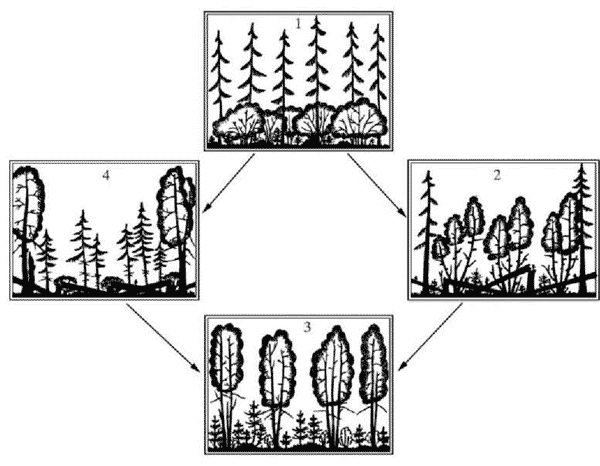 Смена хвойных эдификаторов лиственными и обратно в процессе циклического развития парцелл существенным образом отличает хвойно-широко-лиственные леса от собственно широколиственных и определяет максимальную гетерогенность этих лесов во всем лесном поясе Восточной Европы.