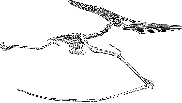 мому, рыбой и жили, вероятно, по прибрежным скалам, так как, судя по строению задних конечностей, подняться с ровной поверхности они не могли. Сюда относятся довольно разнообразные формы: сравнительно примитивная группа рамфоринхов, имевших длинный хвост, и собственно птеродактили с зачаточным хвостом. Размеры колебались от величины воробья до гигантского птеранодона, размах крыльев которого достигал 7 м.