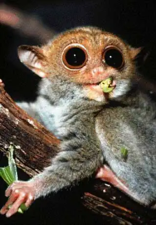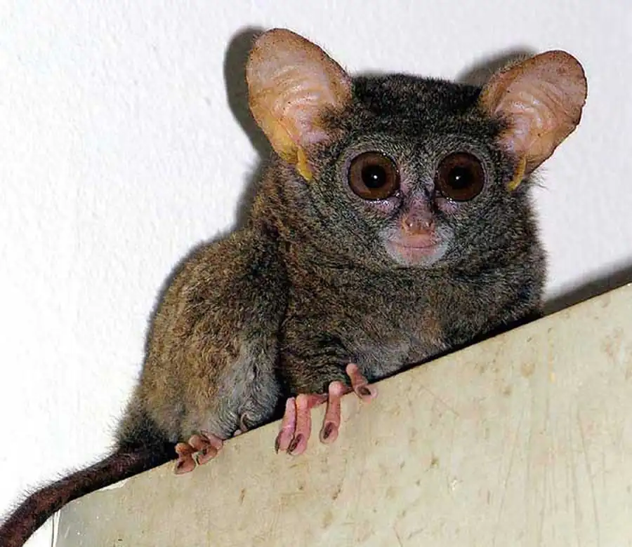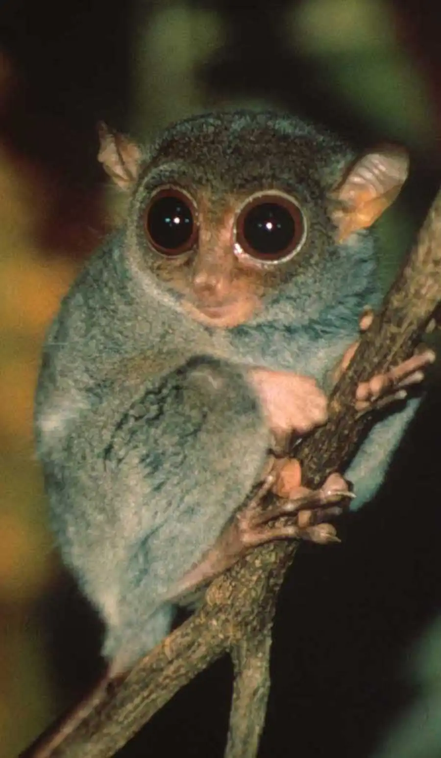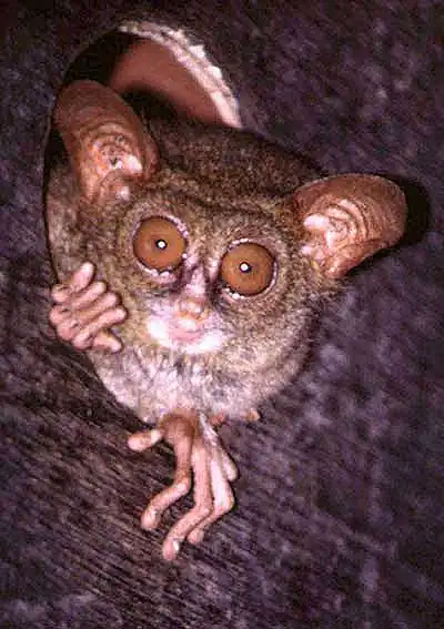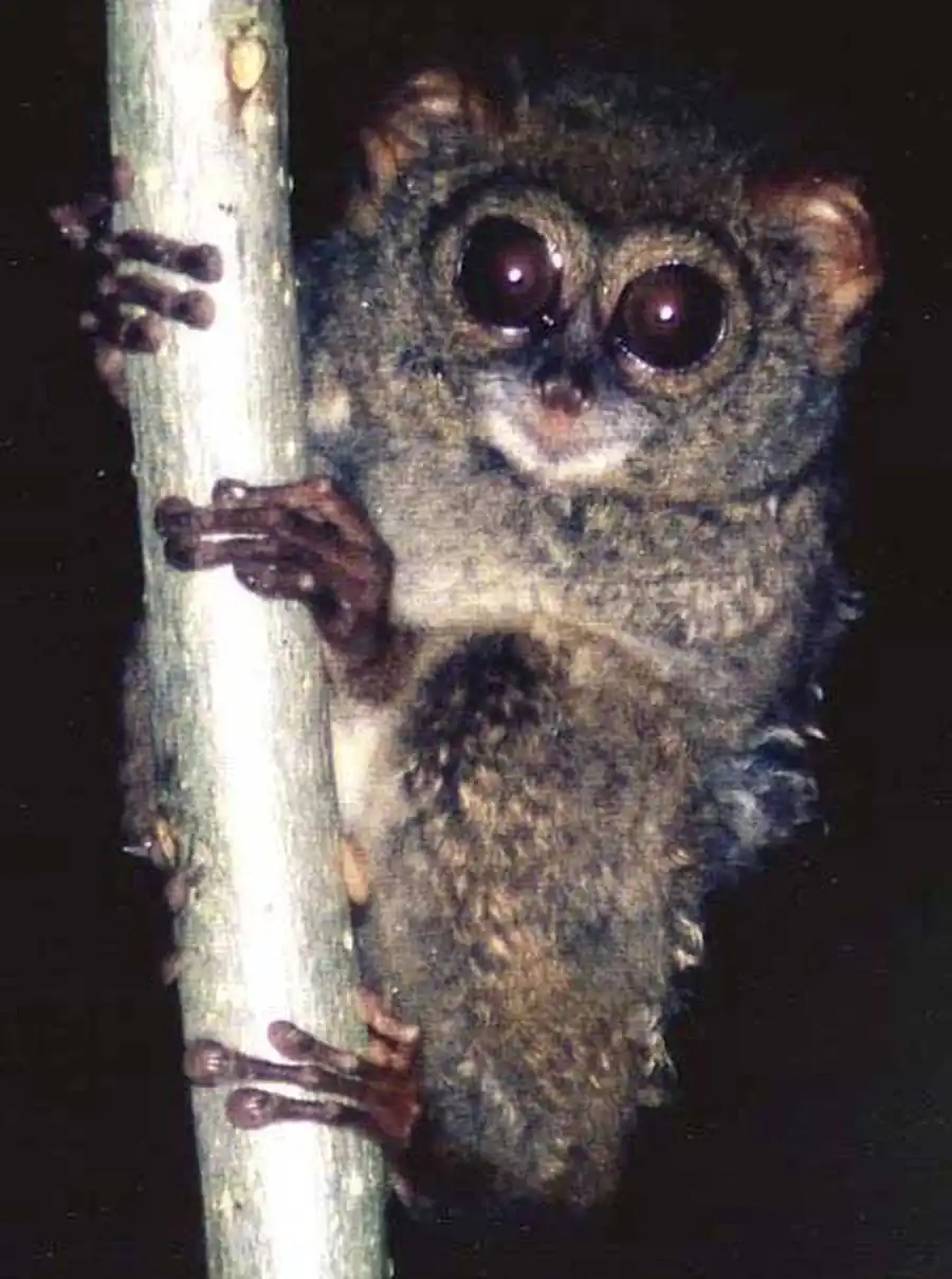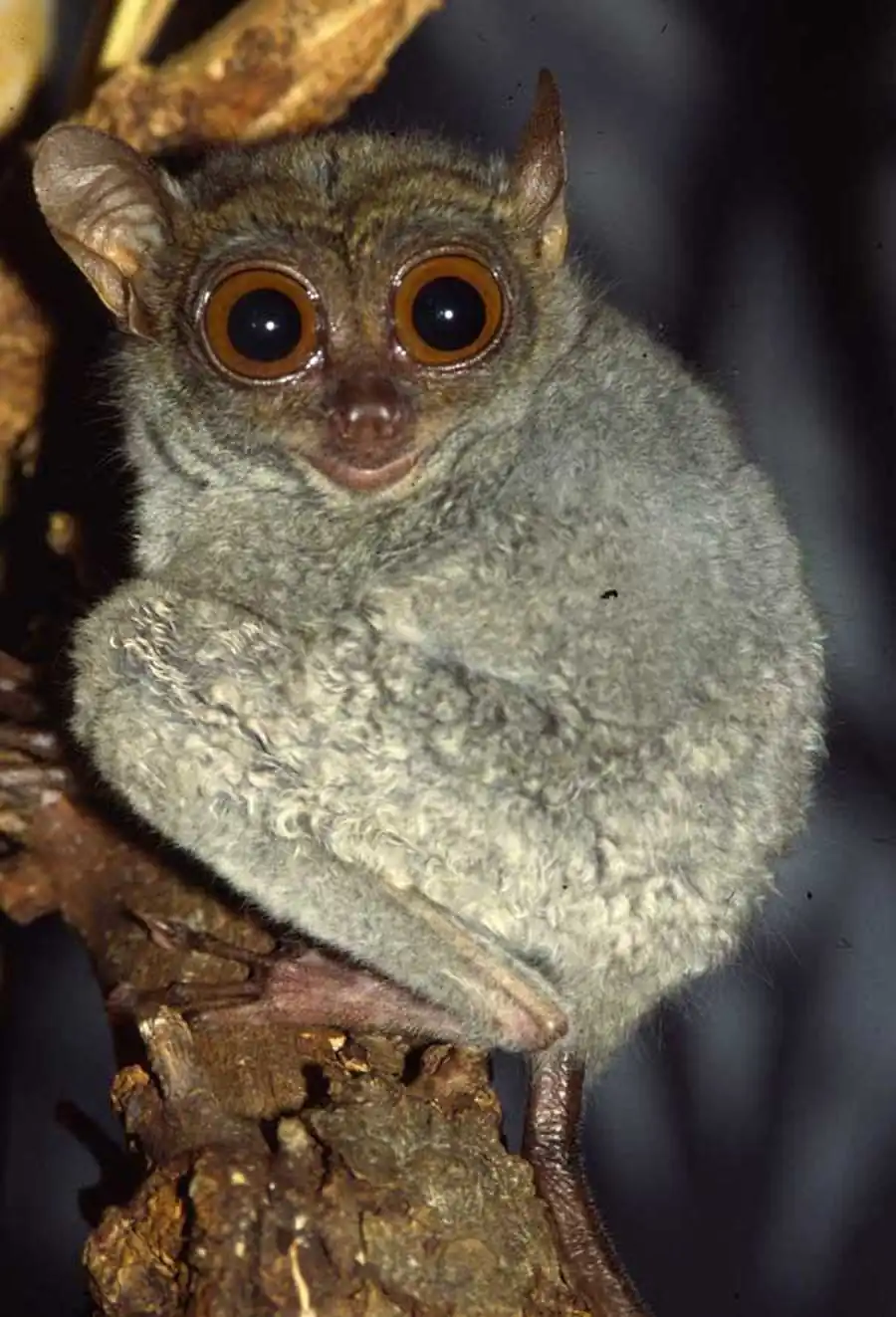 На мордочке долгопята имеются мимические мышцы, поэтому выражение его мордашки может меняться, что делает маленького зверька похожим на человечка.