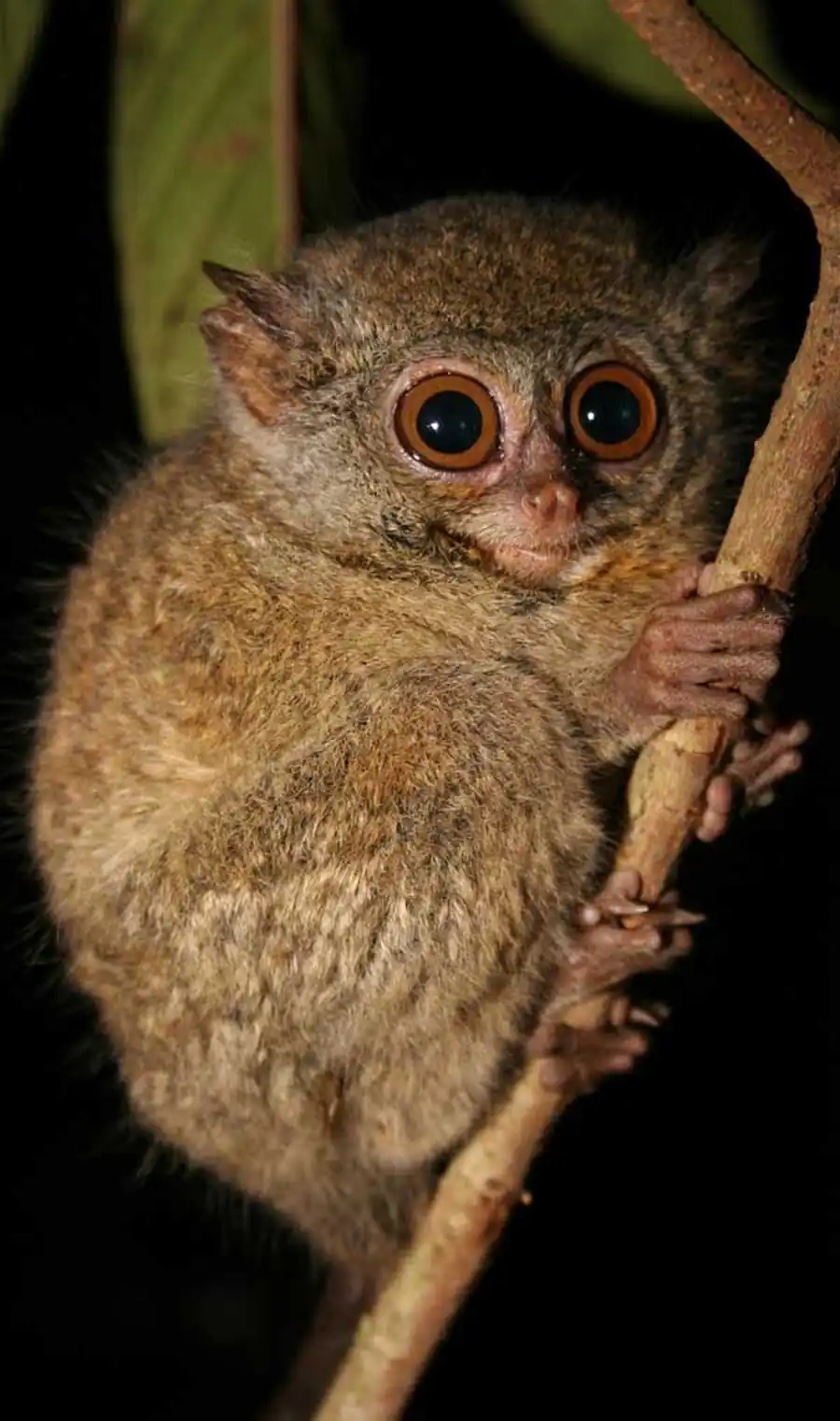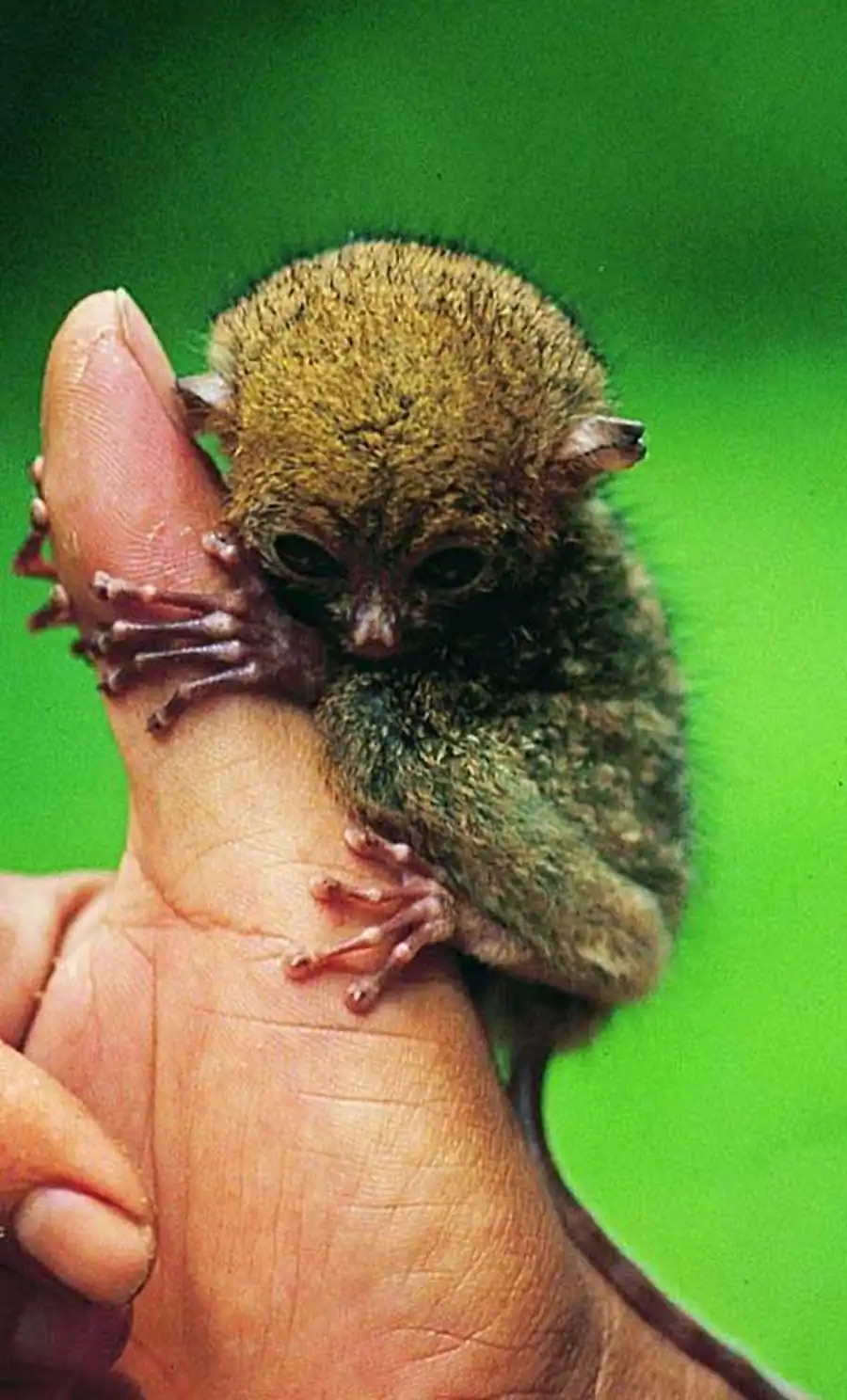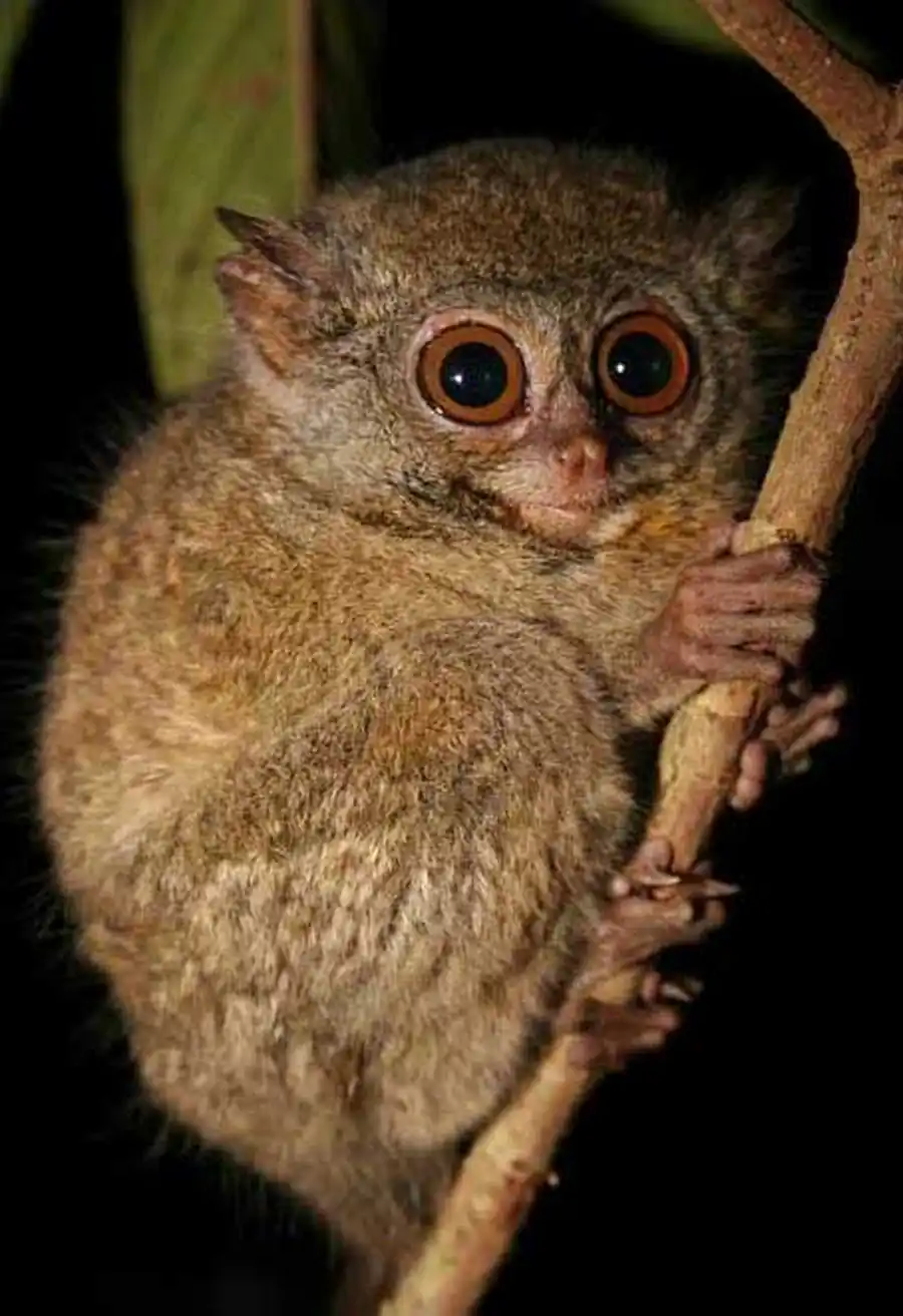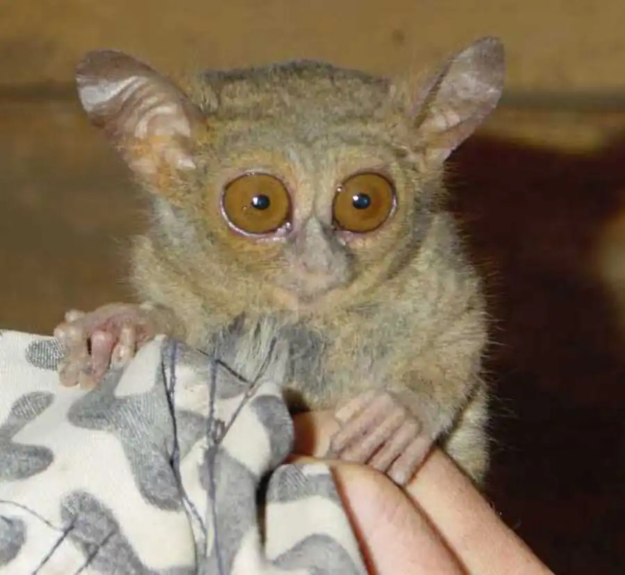 На мордочке долгопята имеются мимические мышцы, поэтому выражение его мордашки может меняться, что делает маленького зверька похожим на человечка.
