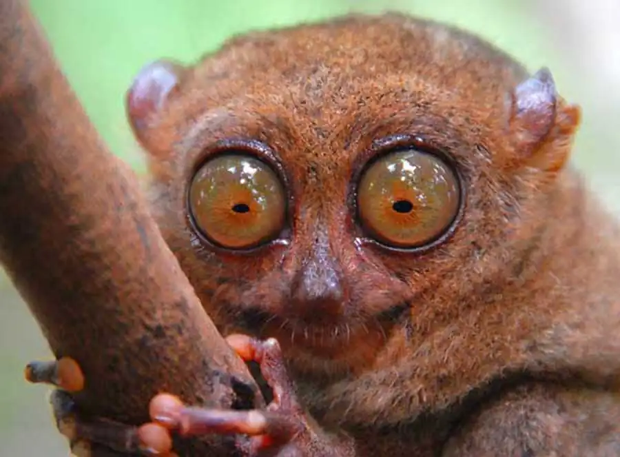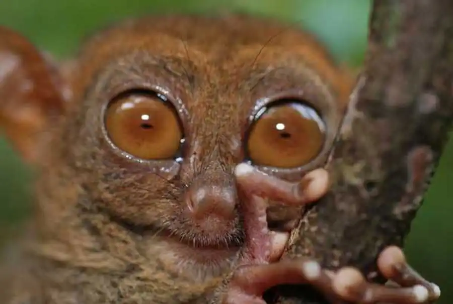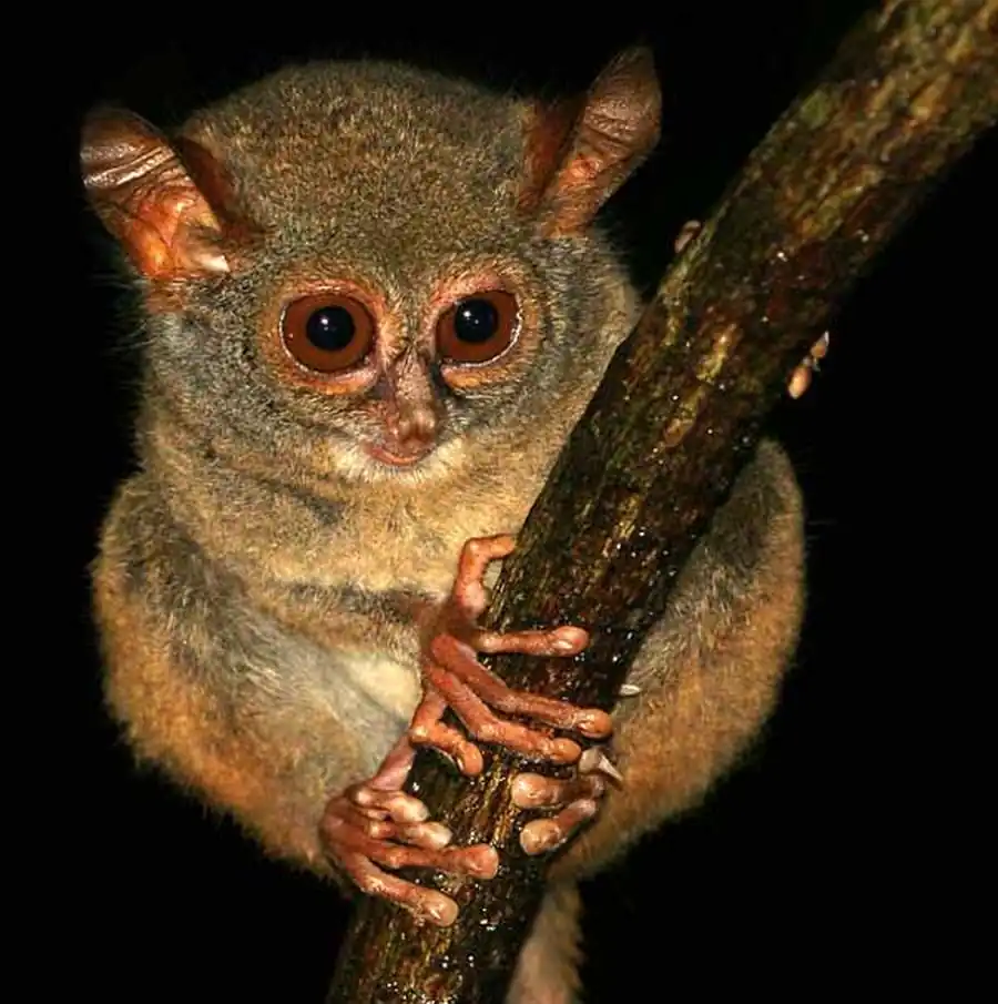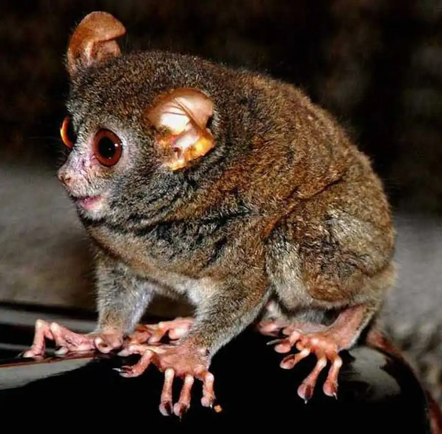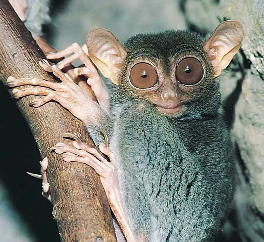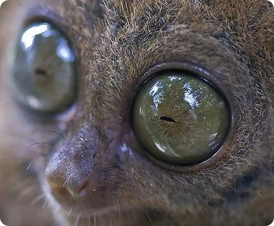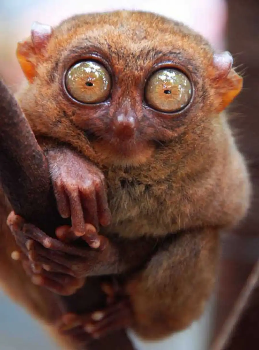 На мордочке долгопята имеются мимические мышцы, поэтому выражение его мордашки может меняться, что делает маленького зверька похожим на человечка.