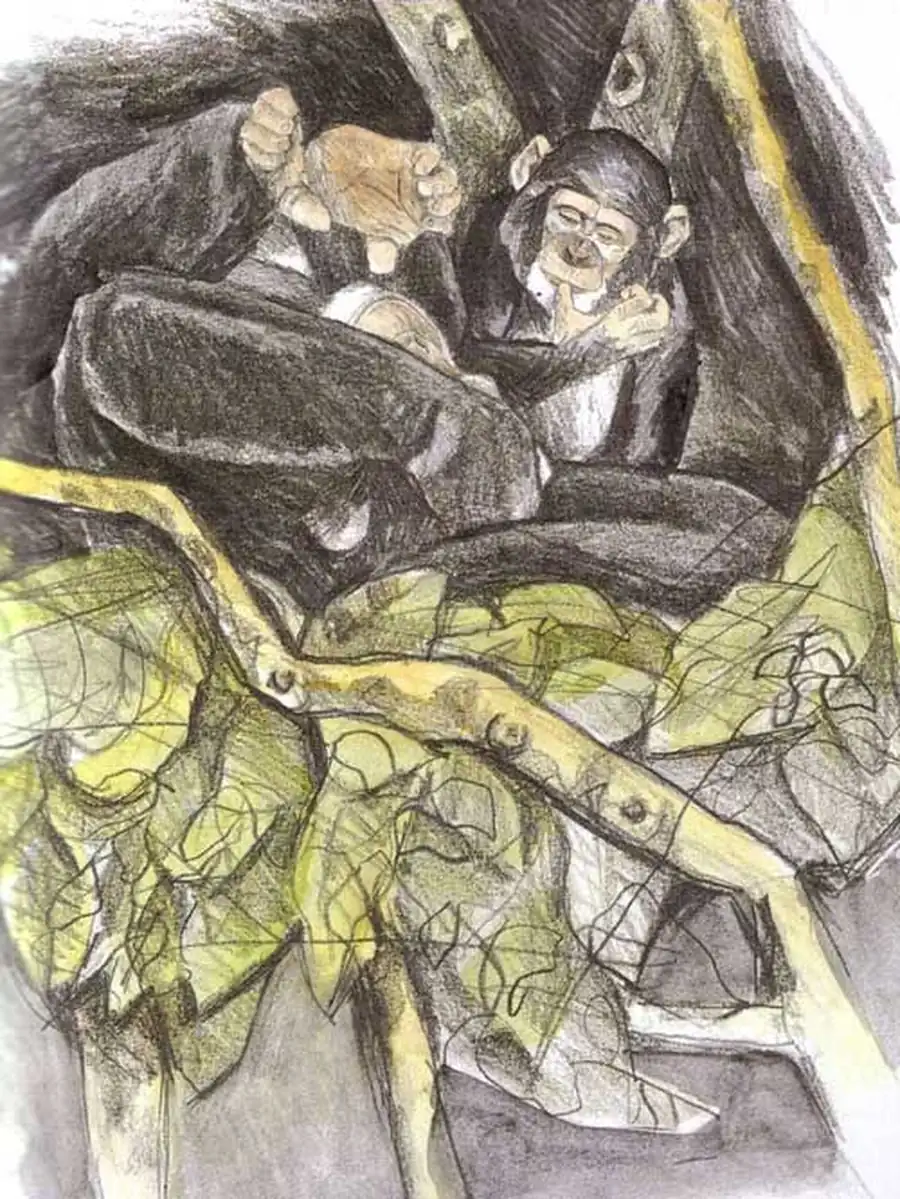 Временный дом. Шимпанзе устраивает себе гнездо, нагибая друг к другу ветви дерева, так что получается рыхлое переплетение, образующее площадку. Эти временные пристанища обычно делаются вблизи от места, где стадо кормилось в конце дня, и редко используются более одного раза.